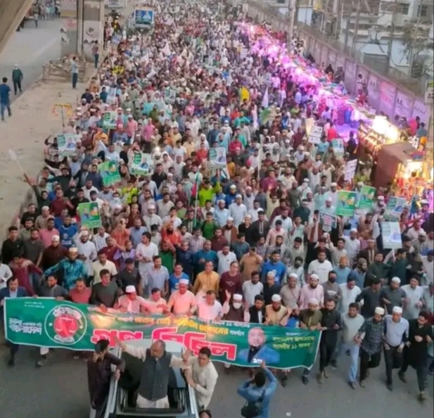 চট্টগ্রাম-১১ সংসদীয় আসনে বাংলাদেশ জামায়াতে ইসলামী মনোনীত ও ১১ দল সমর্থিত প্রার্থী জননেতা মোহাম্মদ শফিউল আলমের নেতৃত্বে এক বিশাল গণমিছিল অনুষ্ঠিত হয়েছে। গণমিছিলে সাধারণ মানুষের স্বতঃস্ফূর্ত অংশগ্রহণ লক্ষ্য করা যায়, যা এলাকায় ব্যাপক উৎসাহ ও উদ্দীপনার সৃষ্টি করে।
