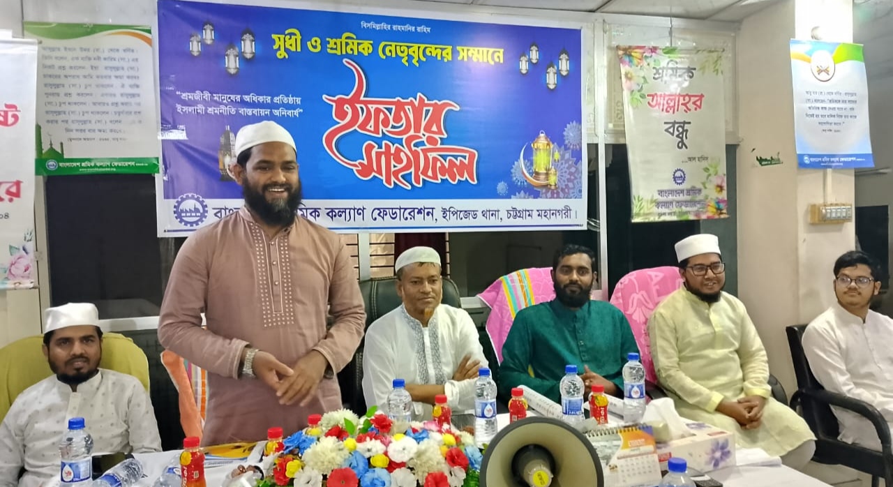 অদ্য ২৫ ফেব্রুয়ারি বাদ আসর বাংলাদেশ শ্রমিক কল্যাণ ফেডারেশন ইপিজেড থানা কার্যালয়ে মো: শহিদুল ইসলাম এর সভাপতিত্বে ও সাধারণ সম্পাদক মাওলানা মোঃ আব্দুস সবুর আশেকী এর সঞ্চালনায় হাফেজ মো: ইদ্রিস করিম এর পবিত্র কোরআন তেলওয়াত এর মধ্য দিয়ে উক্ত ইফতার মাহফিল অনুষ্ঠিত হয়।এতে প্রধান অতিথির বক্তব্য রাখেন বাংলাদেশ জামায়াতে ইসলামী ইপিজেড থানার কার্যকরী পরিষদ সদস্য এবং ৩৯নং ওয়ার্ডের কাউন্সিলর প্রার্থী জনাব এডভোকেট মো: শাহেদ। উক্ত ইফতার মাহফিলে আলোচনা পেশ করেন থানা সহ-সভাপতি জনাব মোহাম্মদ হোছাইন মাহমুদ।বিশেষ অতিথির বক্তব্য রাখেন বাংলাদেশ ইসলামী ছাত্র শিবির ইপিজেড থানার সাধারণ সম্পাদক বিশিষ্ট ছাত্র নেতা জনাব মো: যাহেদ । বিশেষ অতিথি হিসেবে আরো উপস্থিত ছিলেন ইপিজেড থানার ৩৯ নং ওয়ার্ডের বিশিষ্ট ব্যাবসায়ী ও সমাজ সেবক জনাব মোঃ মুজিবুল হক সহ প্রমুখ। উপস্থিত নেতৃবৃন্দ পবিত্র মাহে রমজান এর উপর বিভিন্ন গুরুত্বপূর্ণ আলোচনার মাধ্যমে এর তাৎপর্য তুলে ধরেন। দোয়া- মুনাজাত ইফতার এর মধ্য দিয়ে উক্ত সংগঠন'র সমাপ্তি হয়।