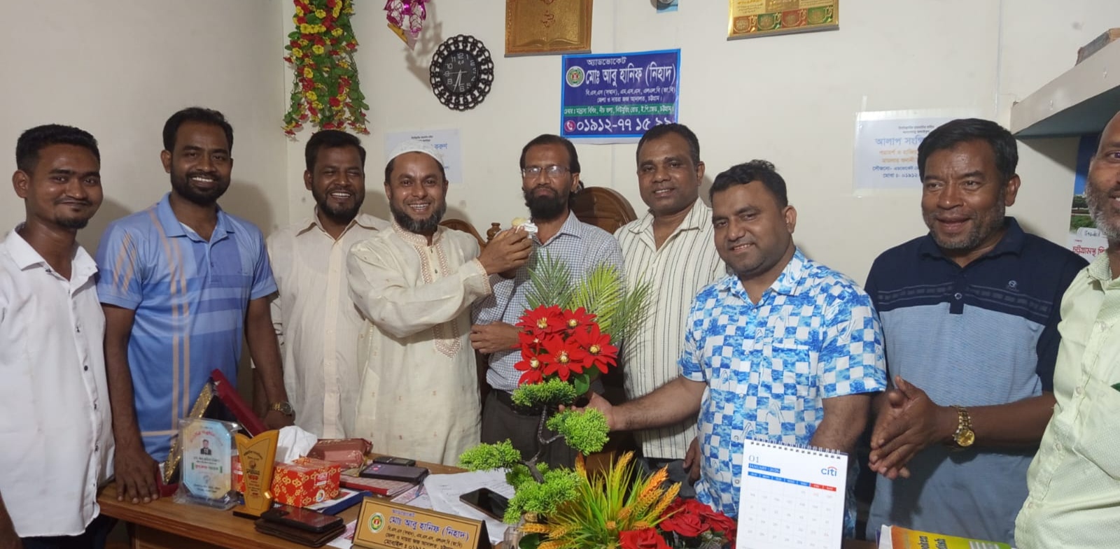 এডভোকেট মোঃ আবু হানিফ নিহাদ (সংগঠক) আজ তার ৪৫ তম জন্মদিনে বিভিন্ন সংগঠন ও বন্ধু- বান্ধব, স্বজন এবং শুভাকাঙ্ক্ষীদের অনেকেই তরুণ এই রাজনৈতিক নেতা, বিভিন্ন সংগঠনের দায়িত্বশীল এডভোকেট মোঃ আবু হানিফ নিহাদ কে প্রথমে মিষ্টি মুখ, ফুলেল শুভেচ্ছা জানান।