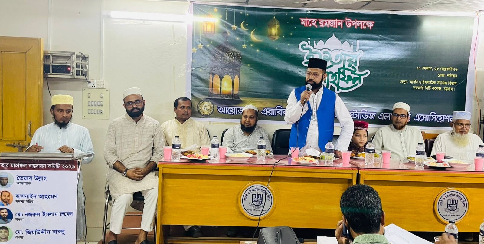 গত ২৮ ফেব্রুয়ারি'২৬, রোজ শনিবার, সরকারি সিটি কলেজ, চট্টগ্রাম এর অন্তর্গত আরবি ও ইসলামিক স্টাডিজ বিভাগের প্রাক্তন শিক্ষার্থীদের সামাজিক সংগঠন এবারিক অ্যান্ড ইসলামিক স্টাডিজ এলামনাই এসোসিয়েশন কর্তৃক আয়োজিত 'ইফতার মাহফিল'২৬, সরকারি সিটি কলেজ, চট্টগ্রাম এর আরবি ও ইসলামিক স্টাডিজ বিভাগ অনুষ্ঠিত হয়।