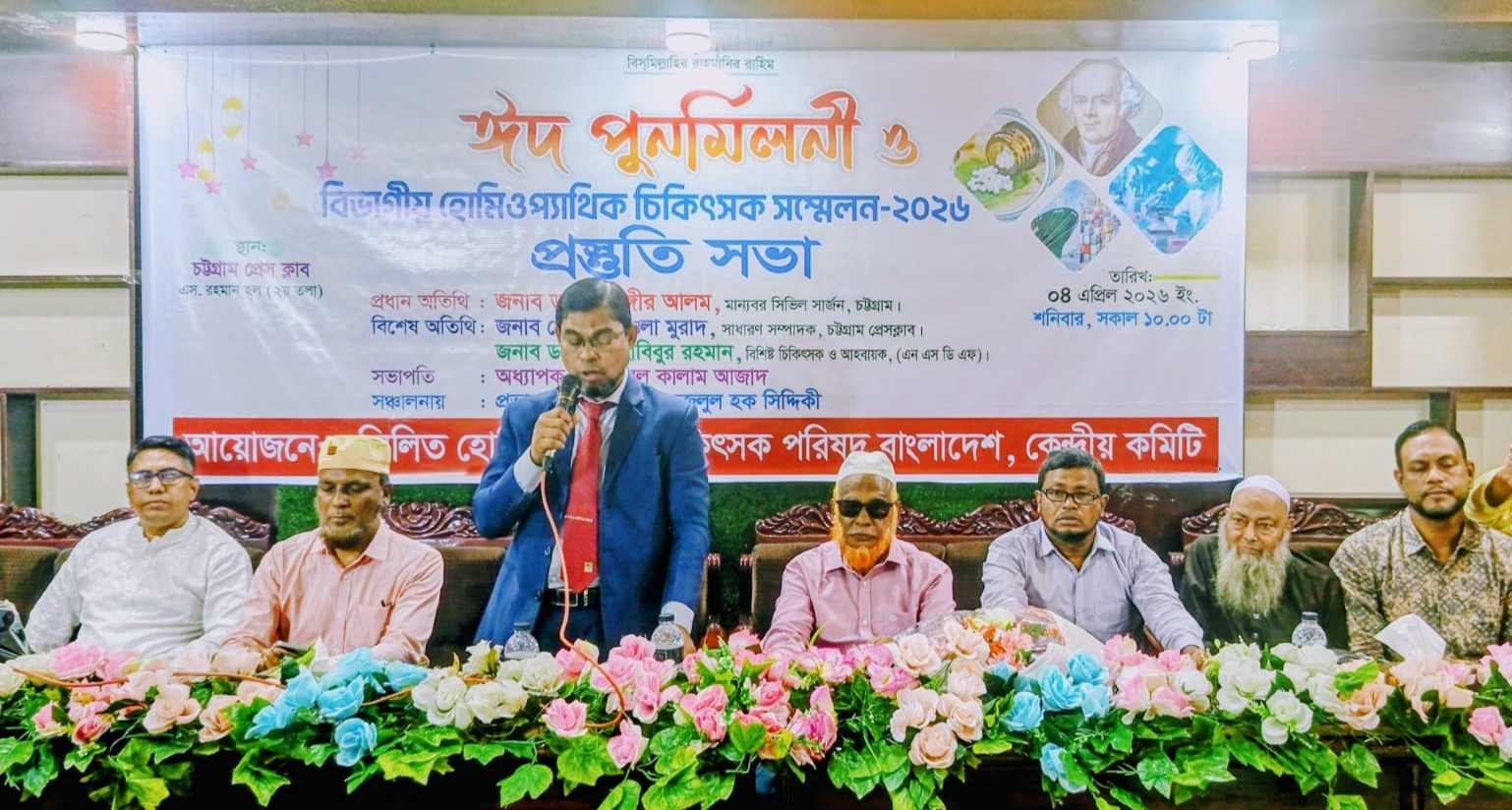সম্মিলিত হোমিওপ্যাথিক চিকিৎসক সম্মেলন -২০২৬ ও ঈদ পুনর্মিলনীতে প্রধান অতিথির বক্তব্যে চট্টগ্রাম জেলা সিভিল সার্জন ডা,মোঃ জাহাঙ্গীর আলম বলেছেন, অসহায় মানুষের পাশে দাঁড়াতে সবাইকে ঐক্যবদ্ধ এগিয়ে আসার দৃঢ় আহ্বান জানিয়েছেন ।এছাড়া তিনি আরো বলেন, হোমিও চিকিৎসা সেবা ও ঔষধের গুণগত মান, ভালো মানের হোমিও চিকিৎসা জরুরি বলে মনে করেন।