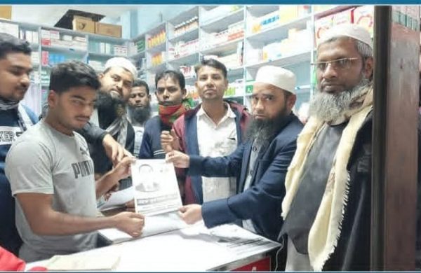 দক্ষিণ আইচা বাজার ব্যবসায়ী সমিতি উদ্যোগে ধানের শীষের লিপলেট বিতরণ ও ভোট প্রার্থনা