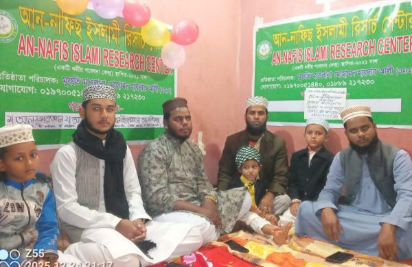 মানব সময় ডেস্ক: চট্টগ্রাম জেলার বাঁশখালীর রত্নপুরে অবস্থিত আন-নাফিছ ইসলামী রিসার্চ সেন্টারের ৫ম বর্ষপূর্তি উদযাপন উপলক্ষে পবিত্র কোরআন তিলাওয়াত, জিকির ও দোয়া মাহফিল গত ২৪/১২/২৫ইং রোজ বৃহস্পতিবার রিসার্চ সেন্টারের প্রতিষ্ঠাতা